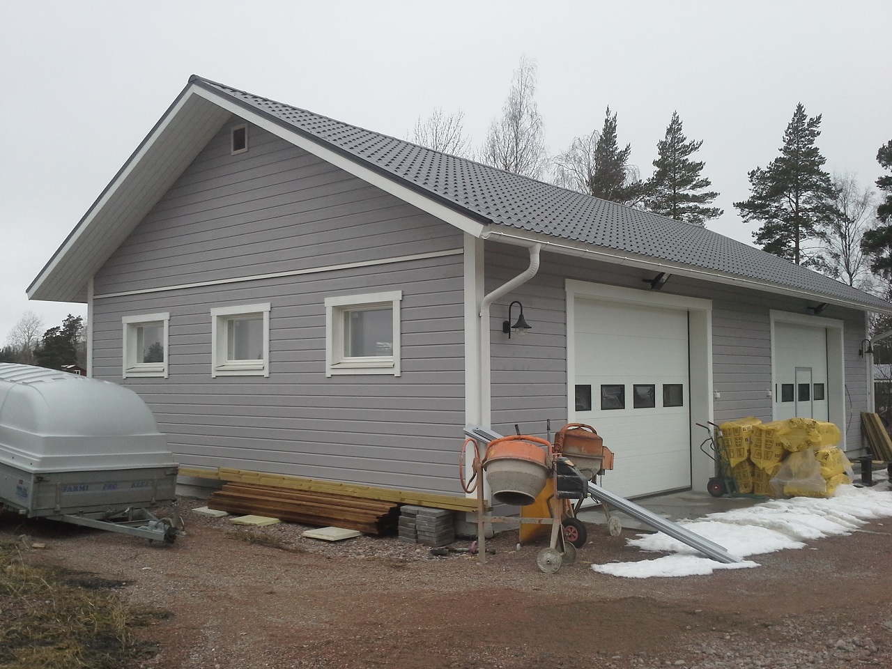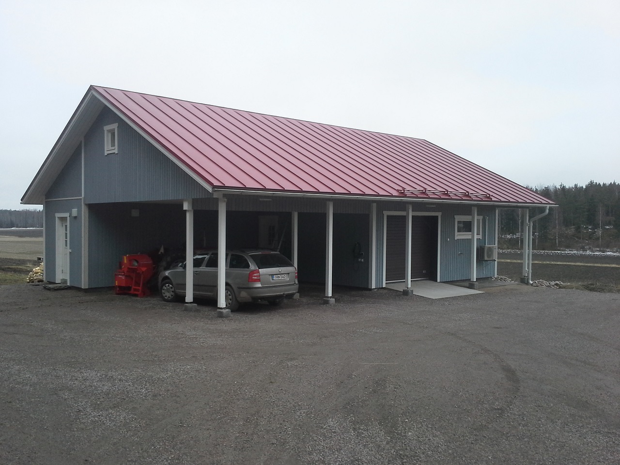 Omakotitalo ja autotalli/autokatos/ varasto/puuliiteri.